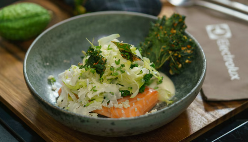 Основное блюдо: Лосось в азиатской глазури с цветной капустой