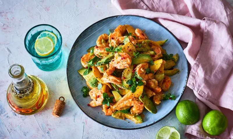 Салат: Тёплый салат с креветками, авокадо и цитрусами