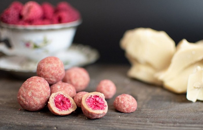 - Сублимированная малина. Очень ароматная, слегка кислая и невероятно вкусная. Подходит для смузи, выпечки, шоколадных десертов, чизкейков. Благодаря высокому содержанию антоцианов помогает укрепить сосуды и поддерживает иммунитет.